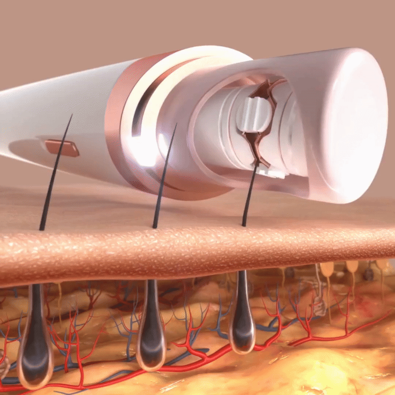 EpilSmooth® använder mekaniska skivor som avlägsnar hår direkt från roten – utan att skada huden. De anpassar sig efter hårets tjocklek, och varje behandling tar bara några sekunder till några minuter beroende på område. Denna process fördröjer återväxten i upp till fyra veckor.