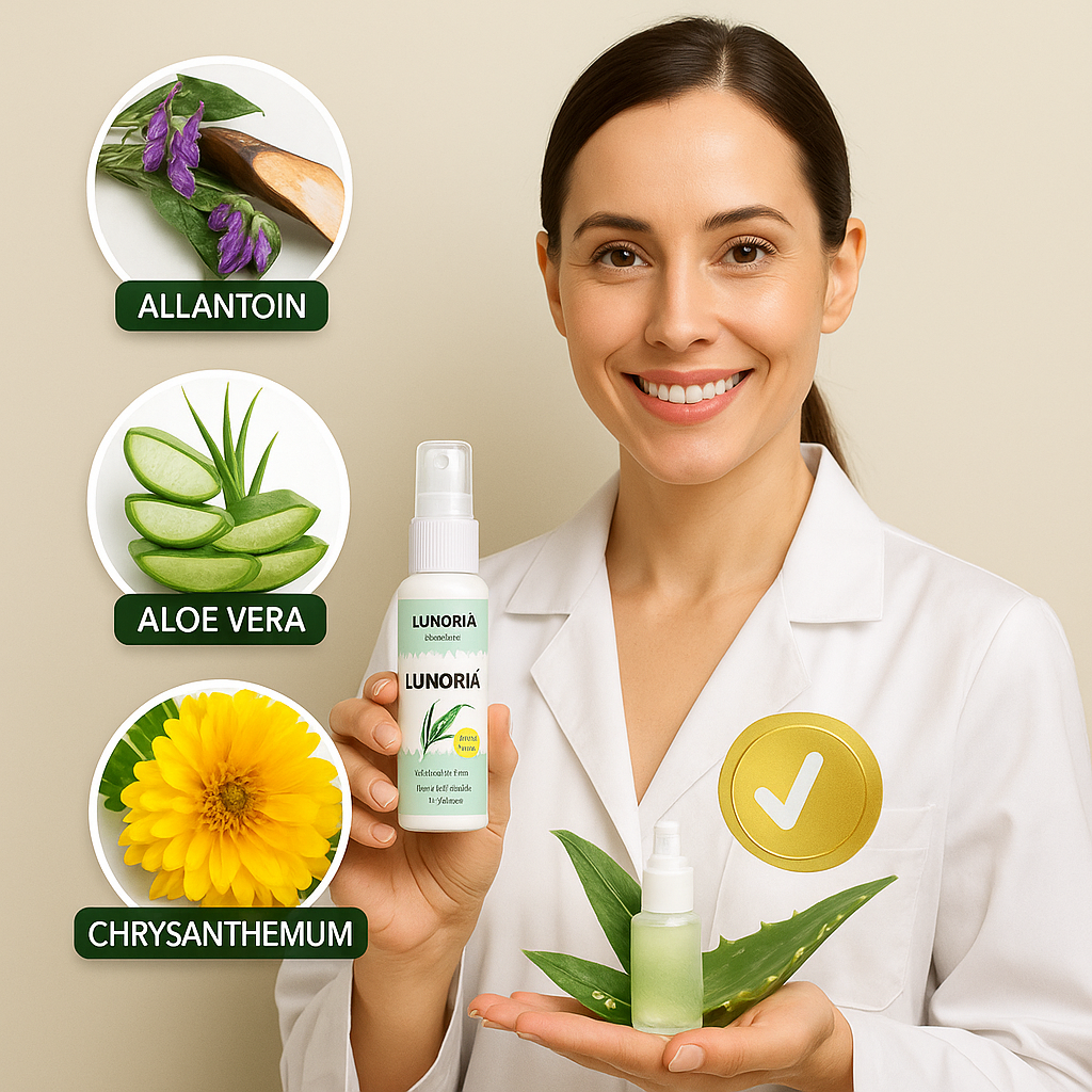 Lunoria® är inte bara en spray – det är ett riktigt genombrott som rekommenderas av experter, med kliniskt testade ingredienser som aloe vera-extrakt, allantoin och chrysanthellum.