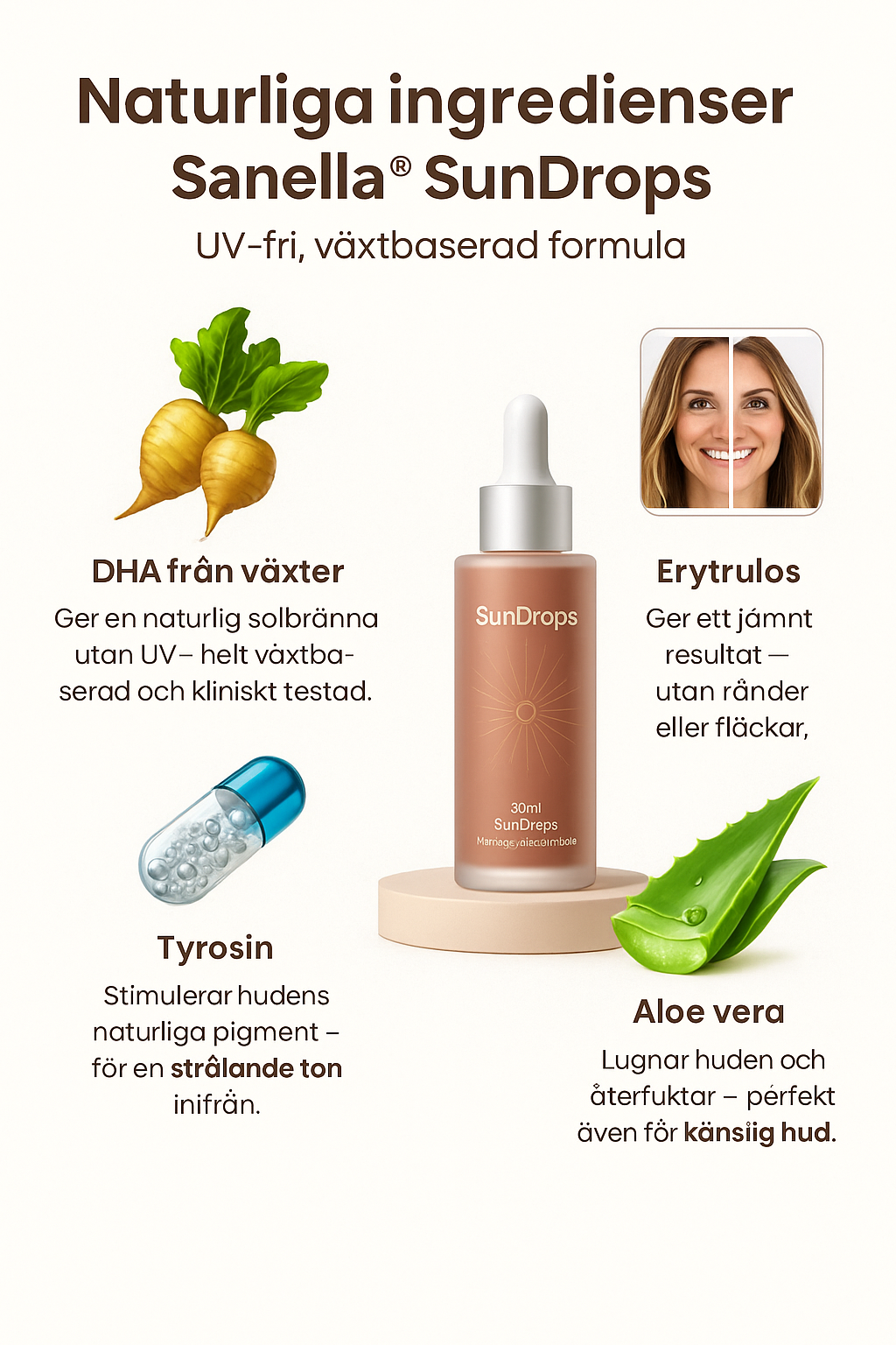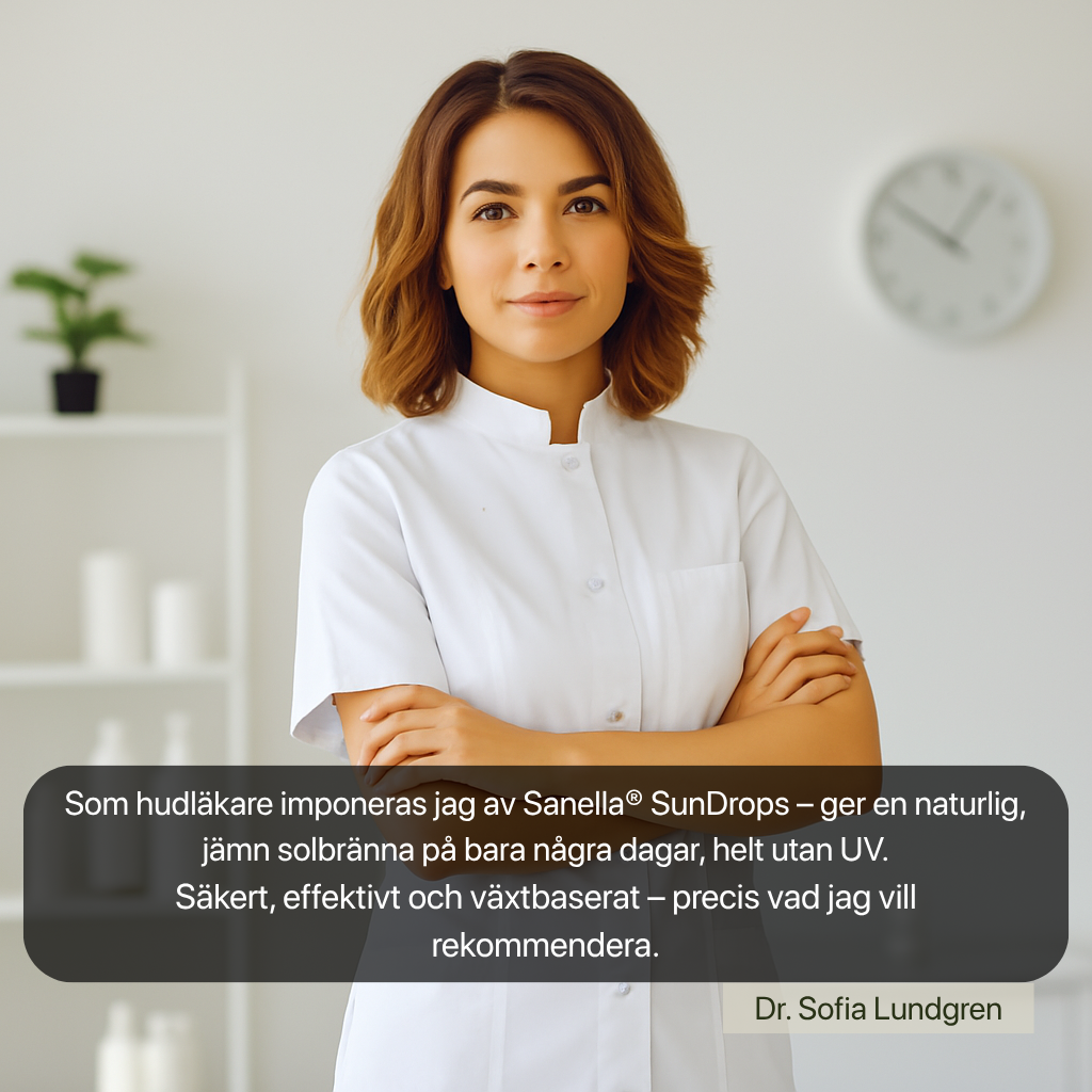 Lunoria® SunDrops är kliniskt testad och utvecklad för att ge en jämn, gyllene ton — helt utan UV eller sol.